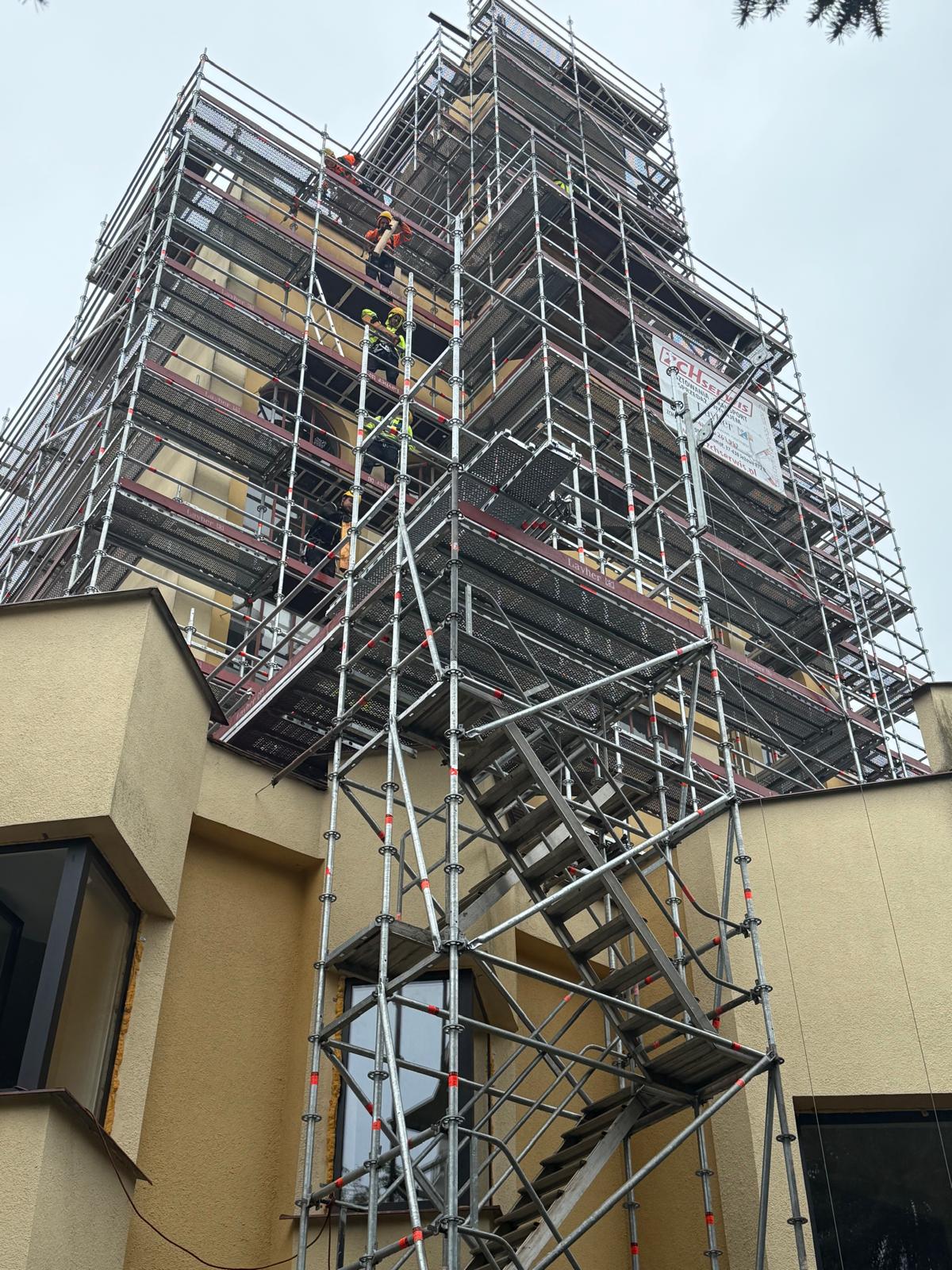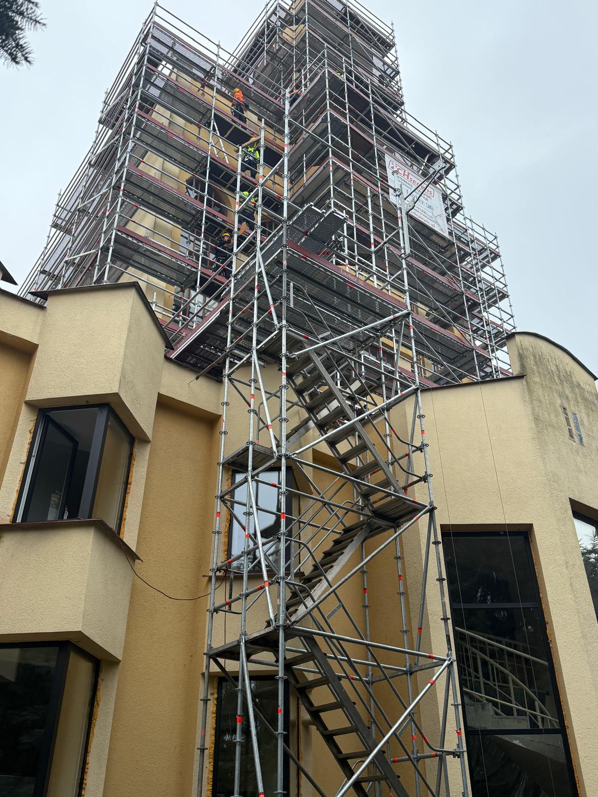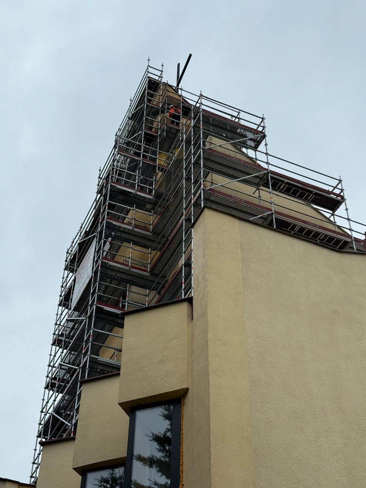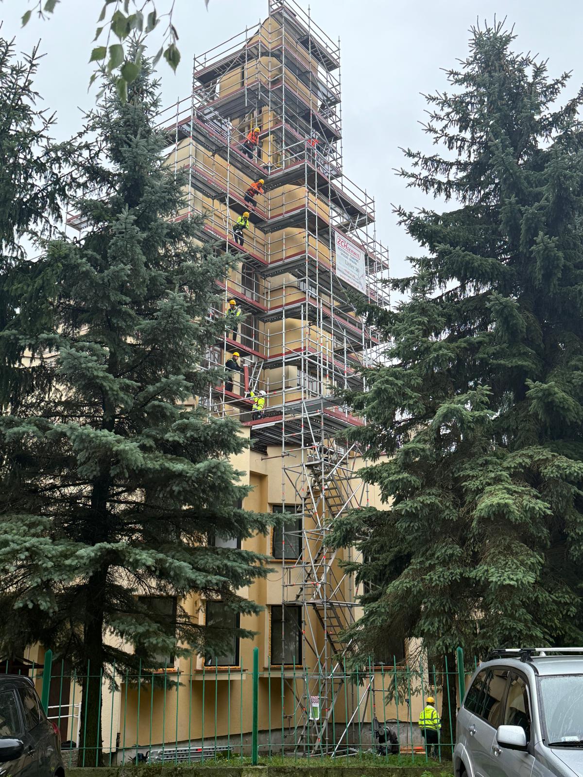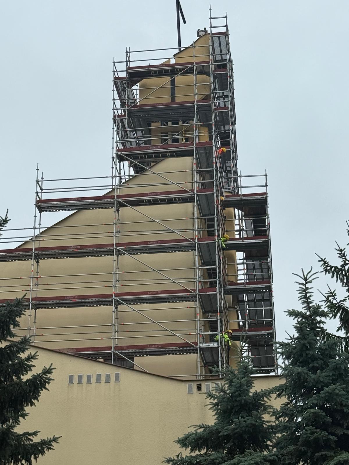 W ramach realizowanego zadania, firma ZCH Serwis odpowiadała za dostarczenie, montaż oraz demontaż specjalistycznych rusztowań systemowych Layher. Rusztowania te umożliwiły bezpieczne prowadzenie prac renowacyjnych elewacji oraz detali architektonicznych obiektu, zapewniając jednocześnie komfort pracy ekip konserwatorskich i najwyższe standardy bezpieczeństwa.